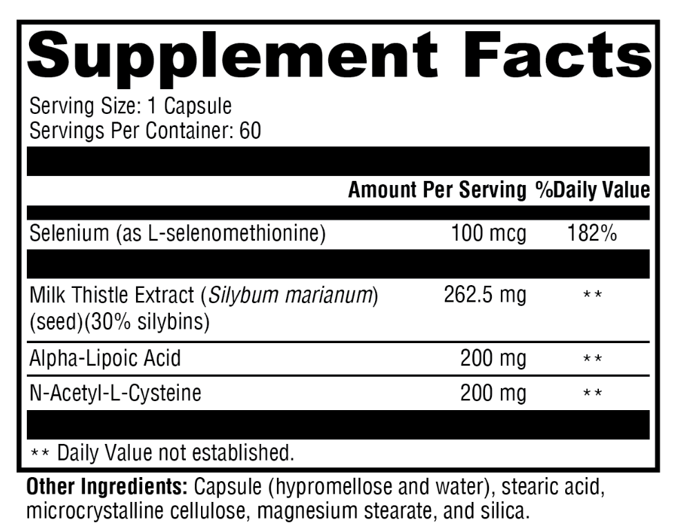 Liver Protect™ contains the amino acid N-acetyl-L-cysteine, a key component of glutathione—a tripeptide that plays a significant role in detoxification and antioxidant support. Liver Protect also contains a combination of alpha-lipoic acid, milk thistle extract, thistle, and selenium for support of antioxidant activity, regeneration of other antioxidants, and promotion of healthy immune function.*